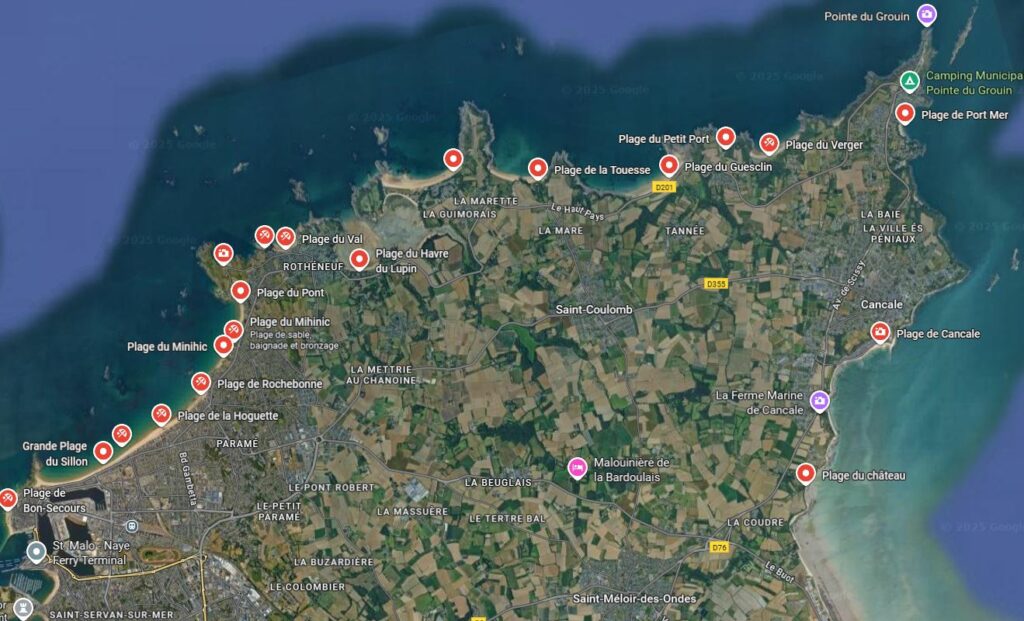 et puis : L’Anse du Guesclin, La plage du Pont, Les Chevrets, La Guimorais : à Saint Coulomb, avec la Pointe du Meinga…